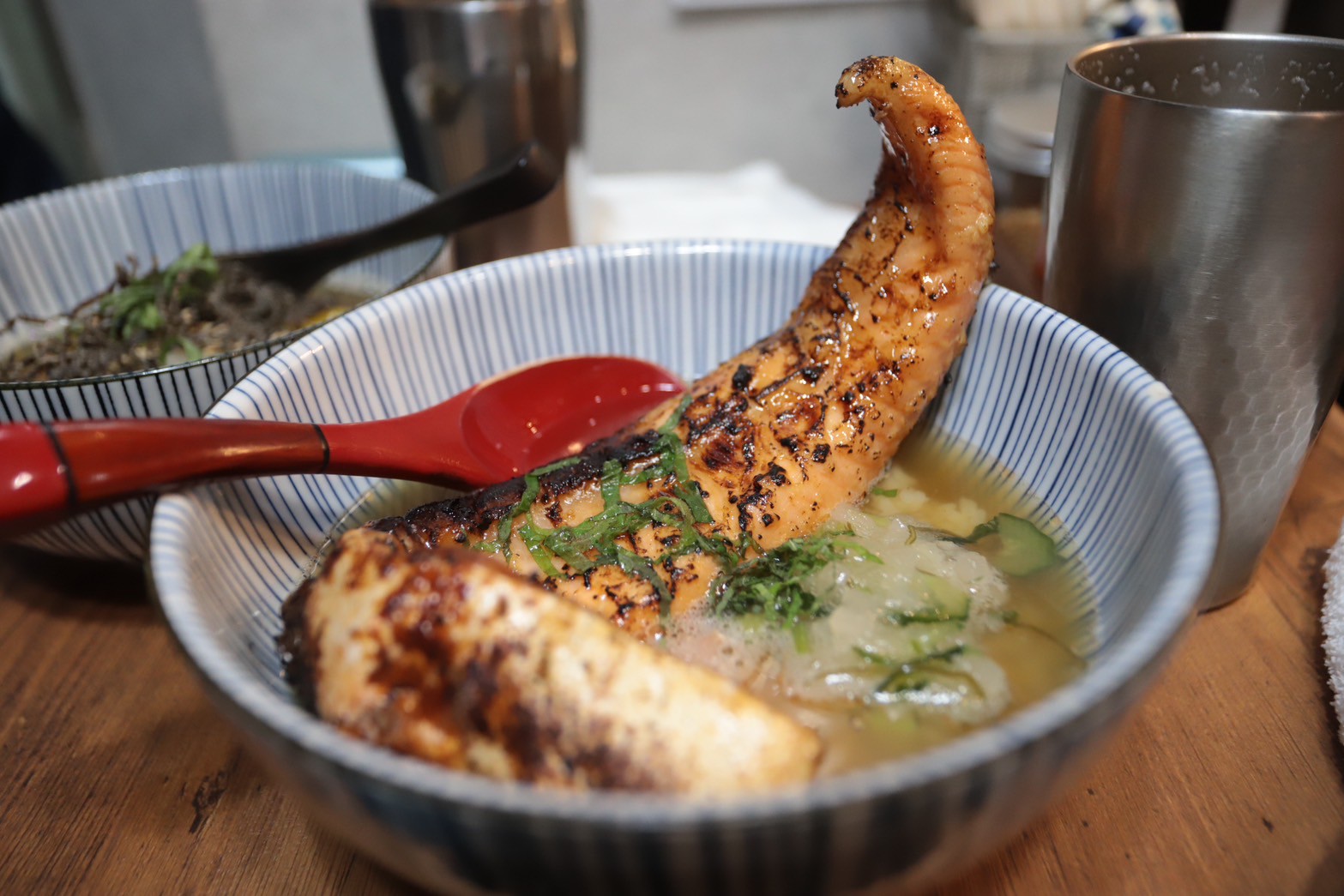 こちらは白ごはんに和風だしをかけて、こんがり焼き上げた特大のハラスが鎮座。