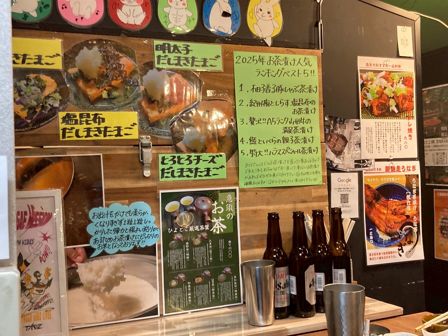 お茶漬けのカスタマイズが楽しめて、朝9時まで営業されている、この辺りの酒飲みや飲食関係の方に重宝されているお店。
