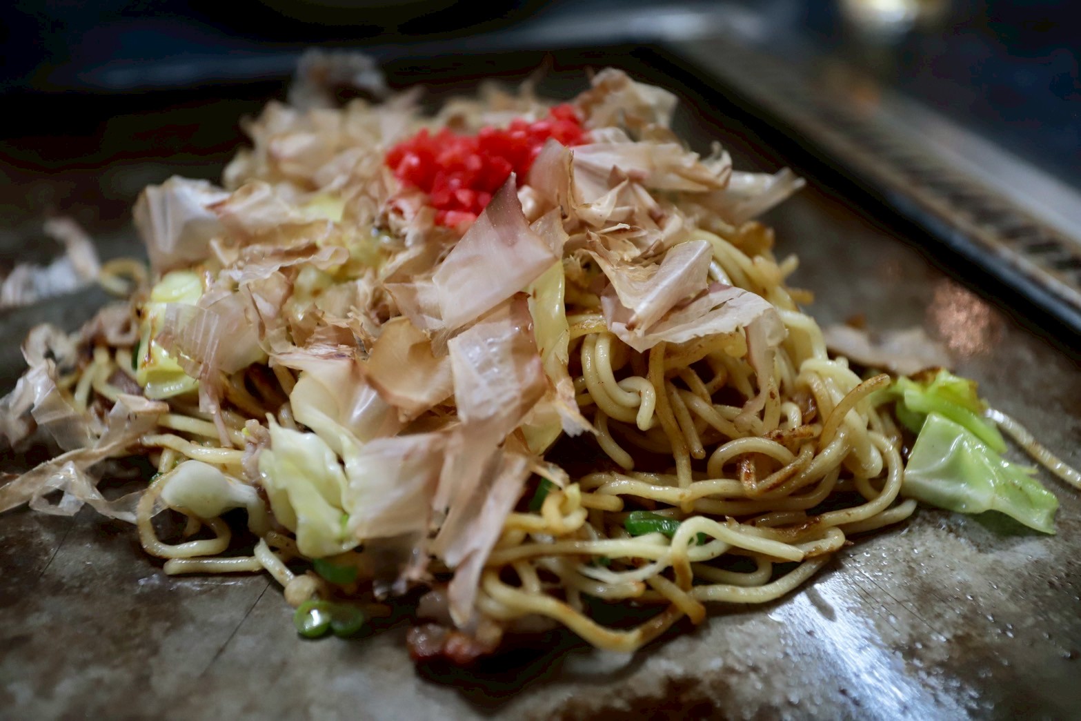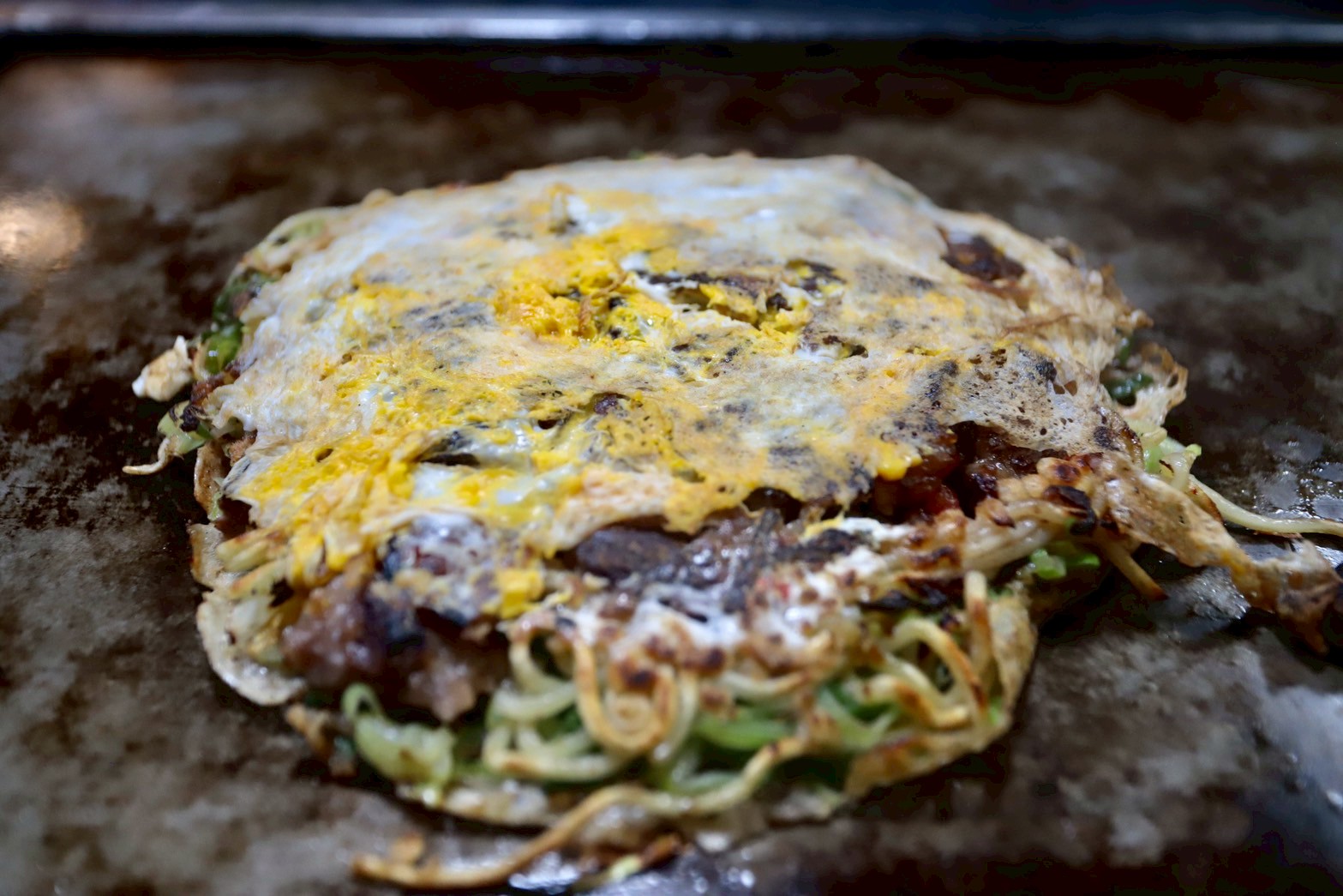ガッツリ焼肉を食べた後に〆のお好み焼きを。