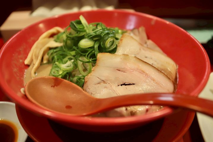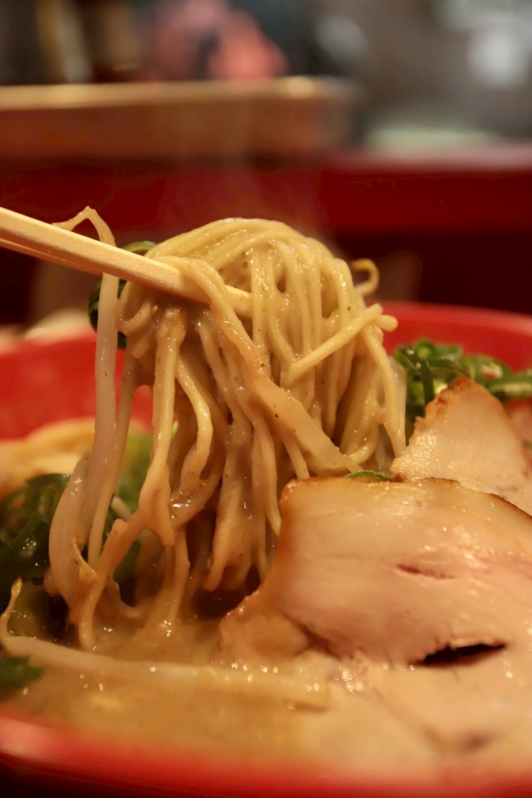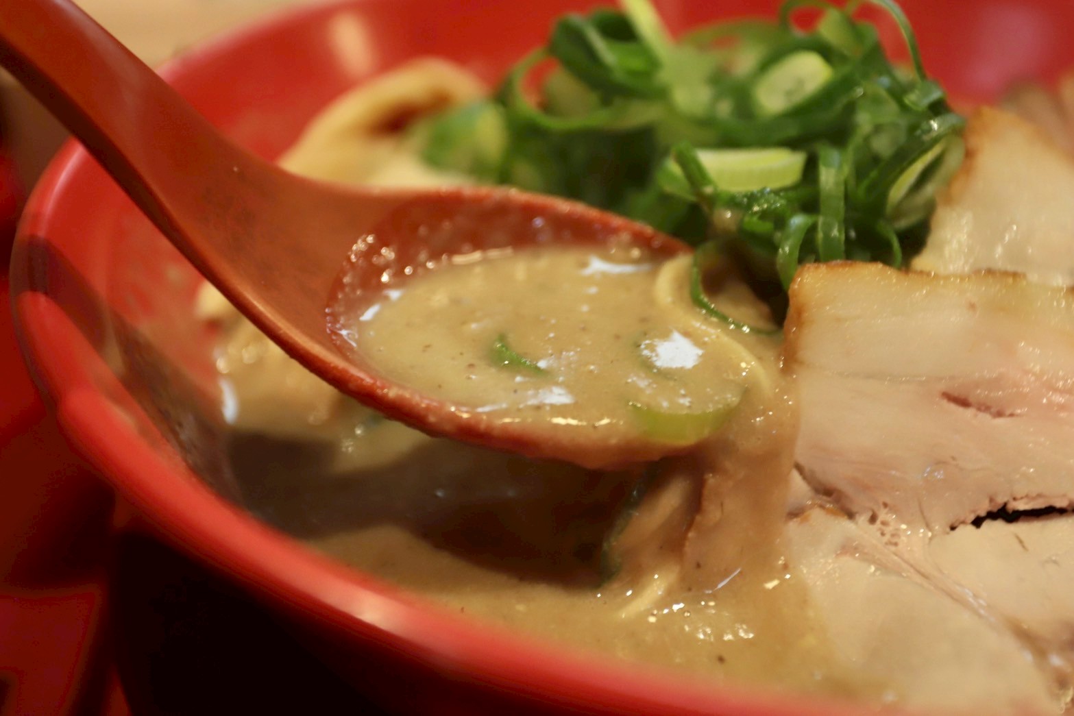 豚骨2種類と鶏ガラ3種類をじっくりコトコト24時間煮込んだスープは特濃の名前に恥じないほどに濃ゆい。