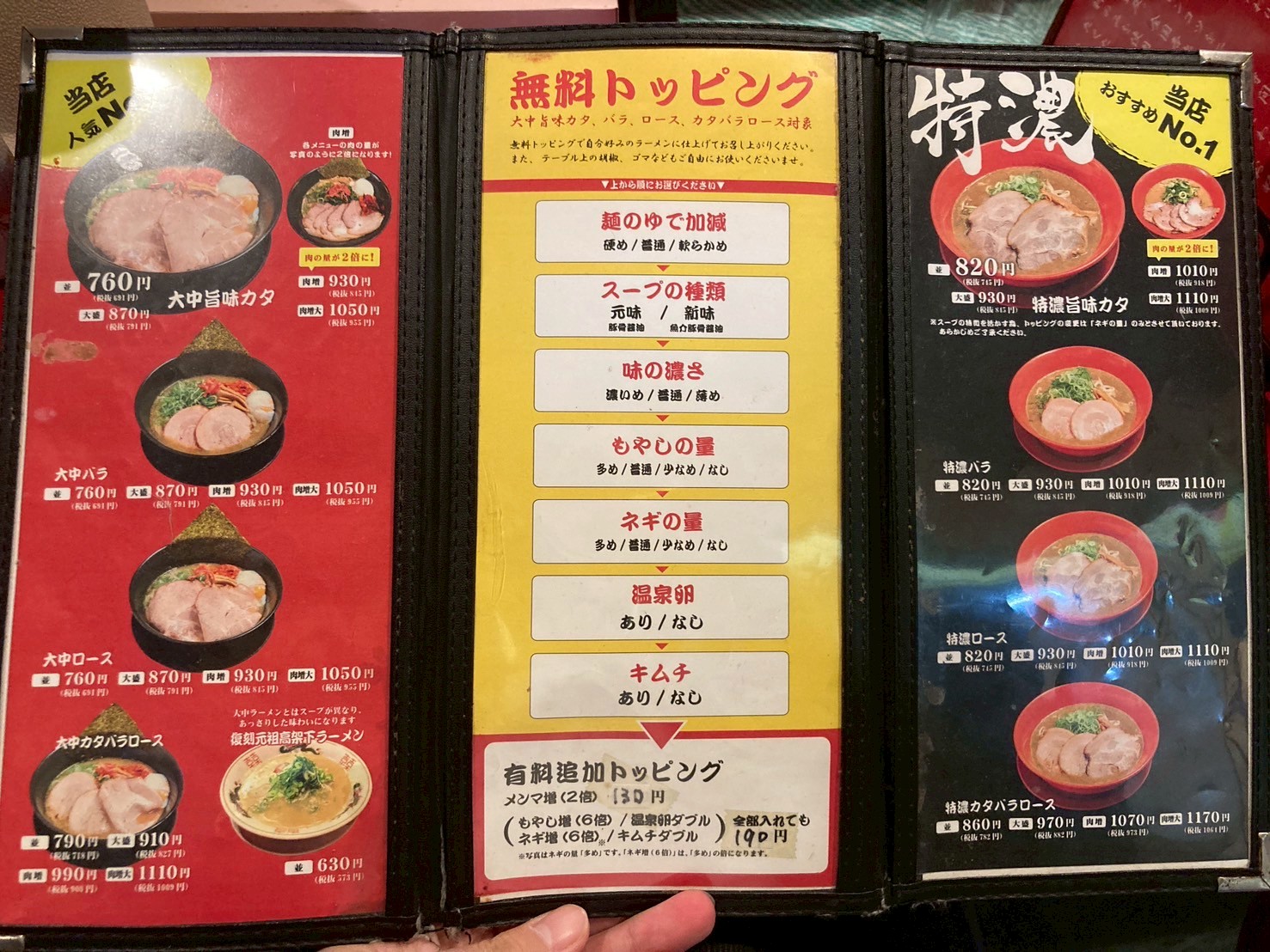 1番人気の「大中」か、お店おすすめNo.1の「特濃」か悩んで「特濃」に。